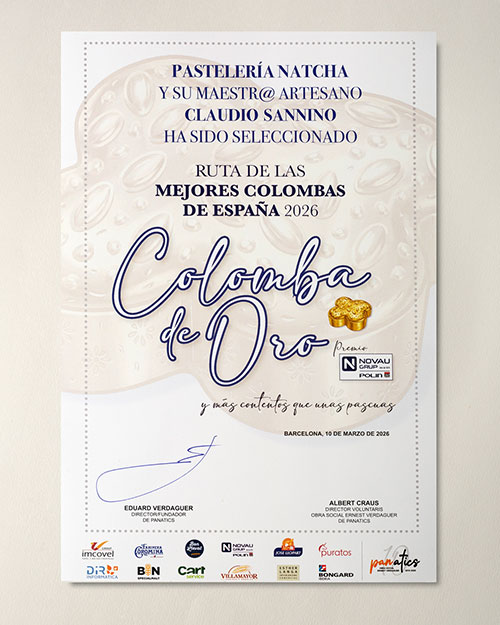 La pastisseria artesanal a Barcelona viu un moment d’excel·lència, i Natcha n’és un clar exemple. La seva Colomba ha estat seleccionada com una de les millors colombes d’Espanya 2026, en el concurs organitzat per Panatics i l’Obra Social Eduard Verdaguer, celebrat a l’Institut Gastronòmic de Barcelona.