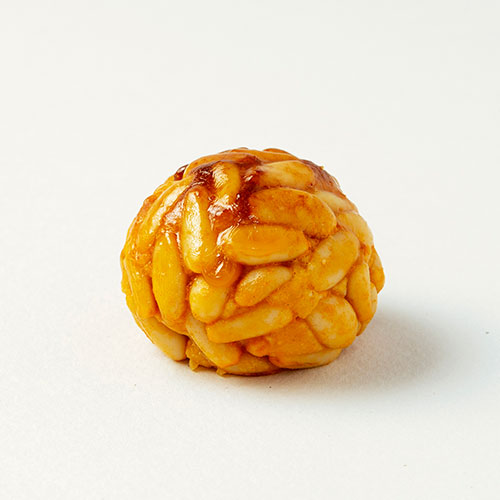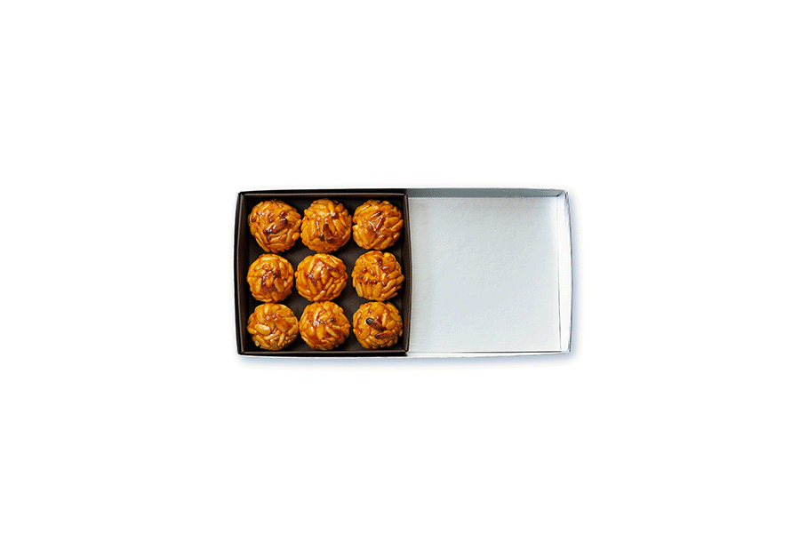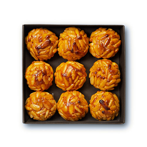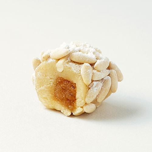 Interior de massapà amb un toc de llimona i exterior cruixent de pinyons torrats.