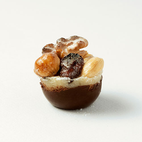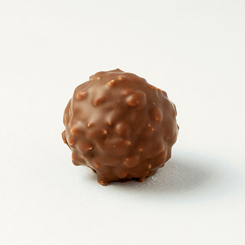 Cruixent i delicat. Massapà d’avellana recobert de xocolata, amb un aire al Ferrero Rocher en versió panellet.