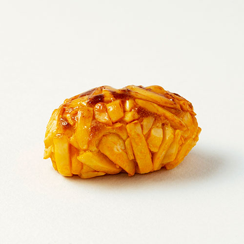 Massapà suau d’ametlla molta, recobert d’ametlla, amb un toc lleugerament cruixent.