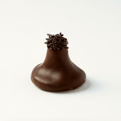 Massapà en forma de bolet, recobert de xocolata negra i virutetes cruixents.