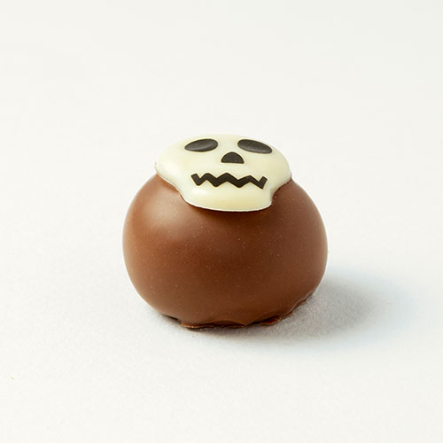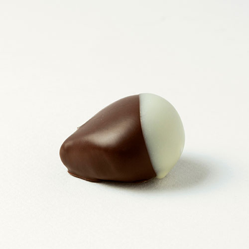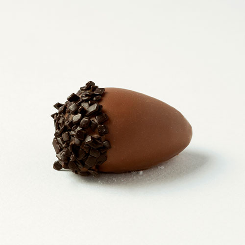 Massapà suau amb un toc de cacau, recobert de xocolata amb llet en forma de gla.