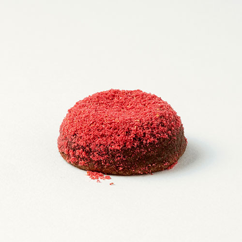 Massapà amb xocolata i farcit de melmelada de gerds, acabat amb pols de gerd.
